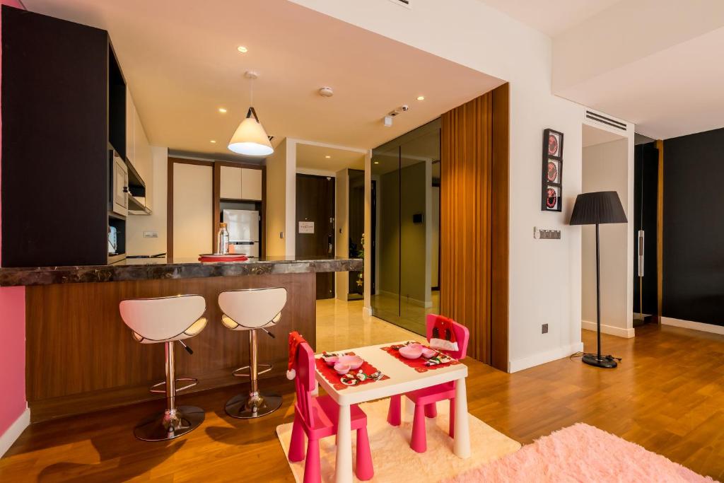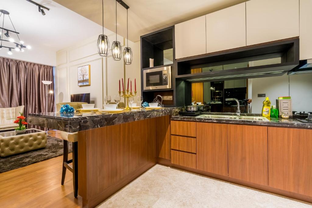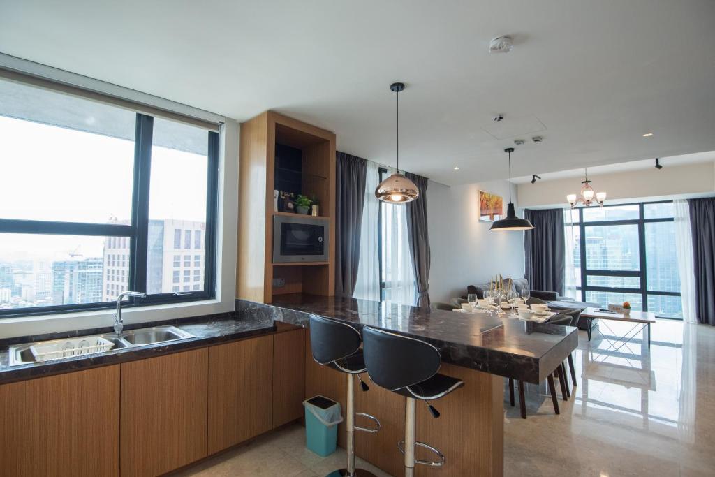 This centrally located hotel offers convenience for shopping, dining, and sightseeing. The staff is friendly and provides excellent service. The apartments are well-appointed with great amenities such as swimming pools and playgrounds. The rooftop provides stunning night views of KL Tower and KLCC. The clean and comfortable rooms offer amazing views of KLCC and KL Tower. Families and couples will appreciate the in-room cooking and laundry facilities, providing great value.