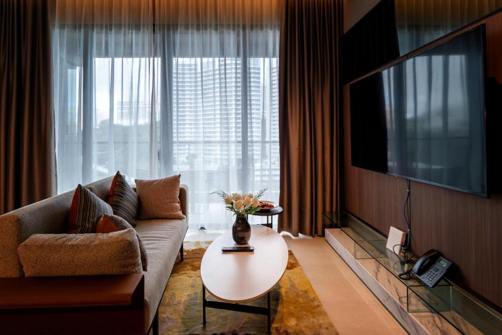 Still very new, and normal rates are a little on the pricier side but seems pretty reasonable once the mall's shops are fully open. Tons of facilities to explore and some are chargeable (e.g. bowling, pool, darts, etc.) but they're currently FOC. Units are extremely clean and well-equipped, and there's a semi-outdoor link bridge (with escalators) that leads straight to SkyAvenue, which is really convenient if you don't want to drive back and forth. Parking fee is capped at RM12 Mon-Fri (except PH) and RM18 weekends, so if you're staying over, expect around RM24-36 to pay for parking. Service from all staff was exceptional.