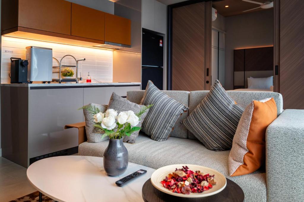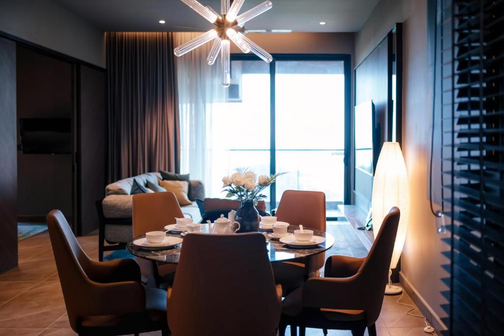 Love the property. Comfortable and well designed interior. The room has everything from microwave, stove, utensils, pots n pans, washing machine, iron, hair dryer, smart tv, safety box, water dispenser (have to dill up with tap water manually) bath tub, and big fridge with freezer. They have Facilities, such as kids playground, trampoline room and arcade room . Parking was easy to find. Can easily use the link bridge. Took about 10-15 mins to walk to skyavenue. Luckily the weather was cold so we kinda enjoyed the walk there and back. Staff was helpful and attentive. Gave us clear explaination on everything we need to know abt the property. There are also a few downside abt this property that needs to be improve. 1) water heater not working properly. The water was not warm for a short period of time 2) volume on the tv cannot adjust. Too loud 3) no convenience store at the property 4) very few eating place. Have to go out to eat 5) had bfast at luck bros kopi. It was so so. 6) parking was quite pricey checked it at 5pm and came out at 1pm the next day. The parking cost us RM30. It says that it only cost rm18 flat rate per day. So its kind of misleading on that part.