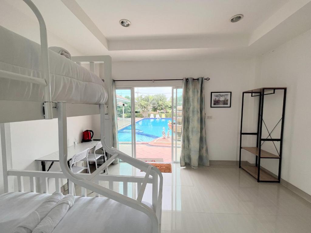 Home JANO offers a selection of inviting rooms designed to suit various travel needs, whether you're visiting solo, as a couple, or with family. The Standard Double Room provides a cozy 20-square-meter space featuring a comfortable Queen Bed, perfect for restful nights after exploring Hua Hin and Cha-am. For those seeking a more spacious stay, the Double Room with Pool View spans 40 square meters and includes two Double Beds, making it ideal for families or groups. Additionally, the Triple Room with Pool View offers flexible accommodation with a bunk bed, catering to groups or families looking for a fun and practical space.