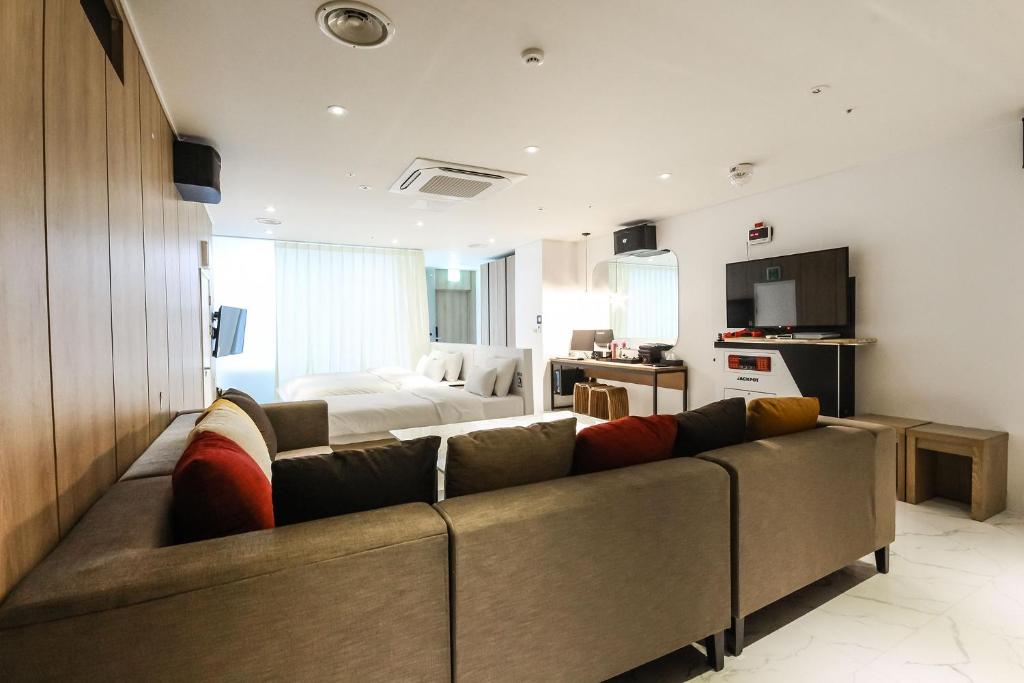 도보로 챔피언스필드 이동 가능하고 근처에 시장이 있어 식당도 많습니다. 1층에 큰 편의점이 있어서 편리하고 편의시설도 우수합니다. 담배냄새 없고 청결한 객실이 마음에 듭니다.