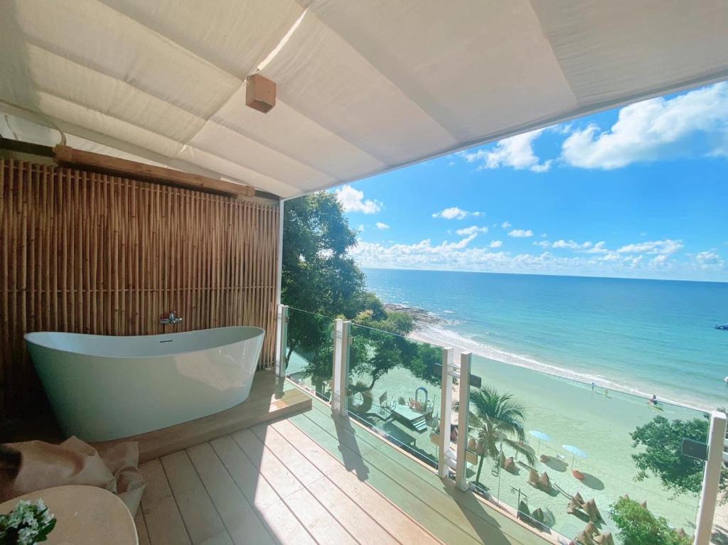 The hotel is very nice, the food is delicious, and the amenities are complete. It is suitable for people who stay and don't go anywhere, as it is quite far from Sai Kaew Beach. However, the beach in front of the hotel is also very beautiful. It was very romantic to come here with my partner, and there is a jacuzzi in the room, which my partner loved very much.