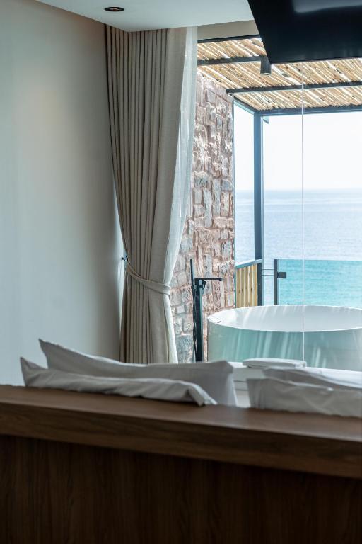 We had a superior ocean view double room that looks like a beach hut perched up the incline of the resort and accessed by rustic wood staircases which are quite flimsy so not suitable for anyone who struggles with stairs, but they do have other room types which are accessible. The room is very much a beach hut but the showeroom is very modern, the bed is a good size and clean also there is a fridge, kettle and hairdryer. To the front of the room is a wooden terrace with 2 beanbags for you to sit on and admire the view and listen/watch the live music, which was very tasteful last night. We ate in the restaurant last night, the food was lovely and the breakfast was very good. Kayaking is free of charge and for a deposit you can also try paddleboarding for free. The staff are brilliant, very attentive and approachable. We have tried to book 2 additional nights as we like it so much but the ocean view properties are full. If we get the chance before we return home we will definitely come back.