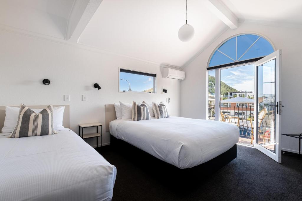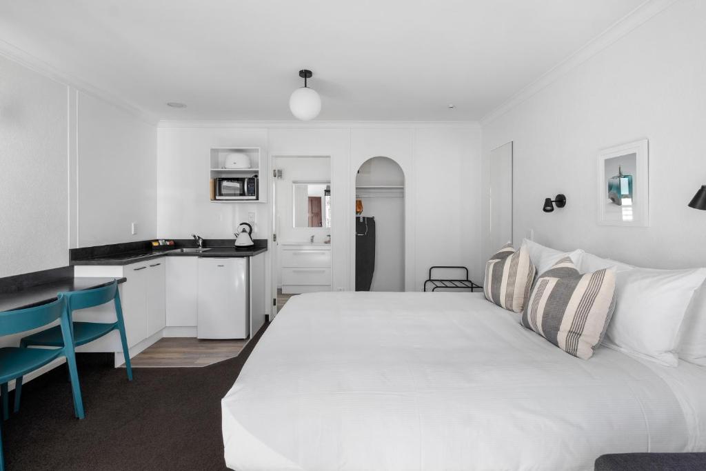 At The Mission Belle Motel in Tauranga, guests can choose from a variety of thoughtfully designed rooms to suit their needs and preferences. Whether you're looking for a cozy Queen Suite with a courtyard and mountain view, a spacious Two-Bedroom Family Suite with skylights, or a compact yet comfortable Studio, there's an ideal option for every traveler. For those seeking a bit more space, the Family Suites with balconies and the larger Queen Suites provide ample room and scenic views, including mountain and harbour vistas. Each room type is crafted to offer comfort and convenience, making your stay relaxing and memorable.