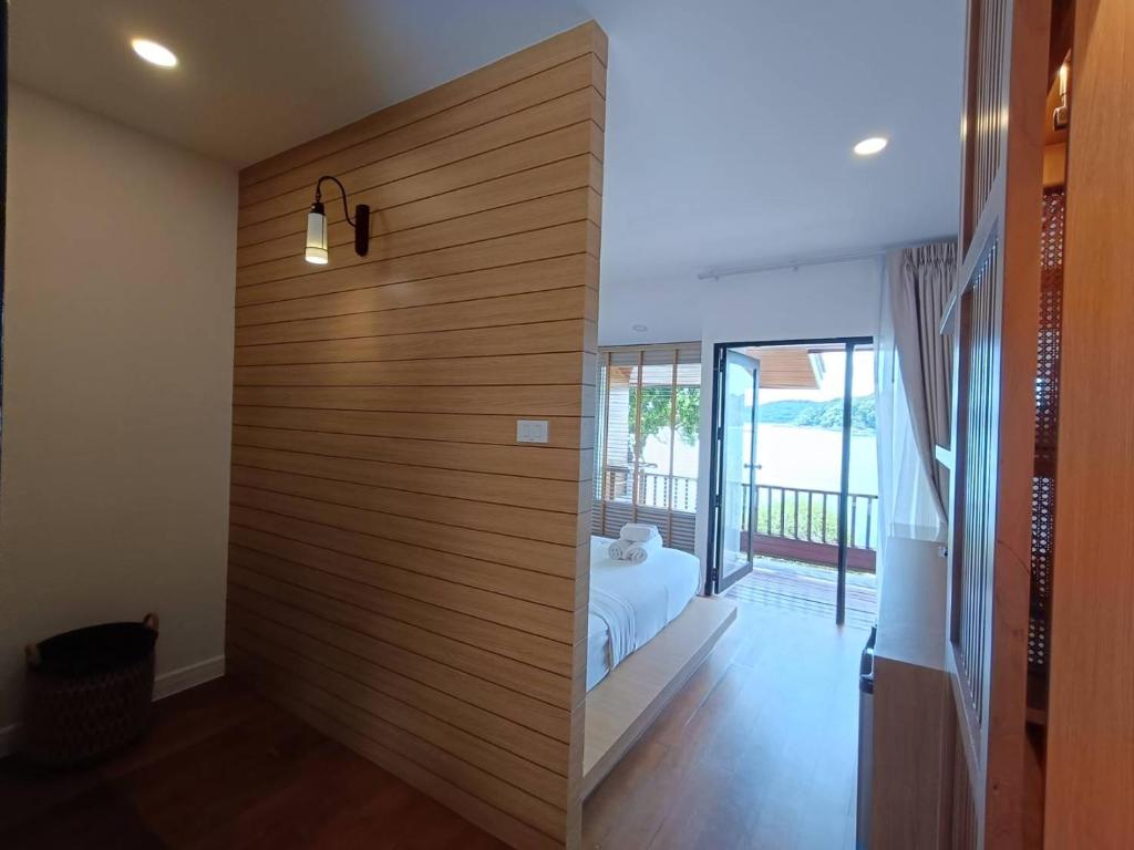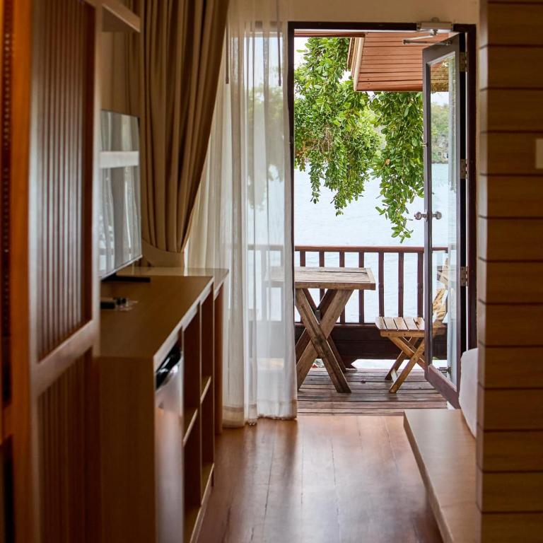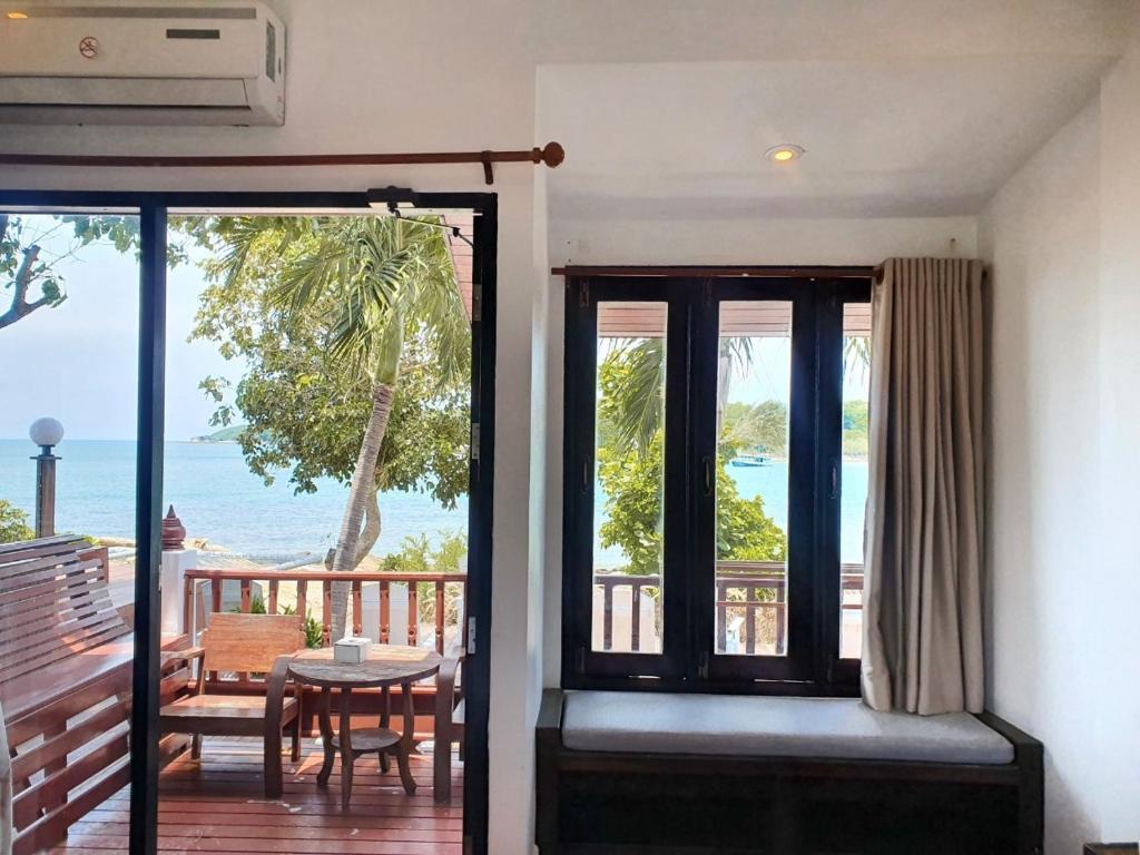 Booked a bungalow with a sea view for 2 nights, rented a motorcycle from the pier at the checkpoint, and rode about 2.5 kilometers. The entrance to the resort is narrow and a bit steep. It is a small resort with only a few bungalows by the sea, which has some rocky parts and some sandy beach, with clear beautiful water. A cash deposit of 1000 baht is required for the key; the deposit slip states check-out is at 11:30 AM (while Agoda mentions 12:00 PM). There is a cute café and restaurant, also serving breakfast, which offers a decent variety of food that is quite tasty. The bungalow is quite old but adequately clean, the room is not large, but it is well-equipped with conveniences. The bed is wooden, and the floor is wooden too. If engaging in activities, it can get quite noisy as the rooms are not soundproof, and you can hear loud noises from the neighboring rooms. There is a balcony, but the wooden bench is old and doesn't look very clean. At the back, it is adjacent to the rocky beach, and there is a small swimming pool along with a drinks bar where you can enjoy dinner with a nice view at a reasonable price compared to other places on the island. The taste is acceptable (I happened to find some undercooked rice, but the restaurant didn't charge for it). In summary, it is a small, old resort that has been renovated and is fairly attractive and comfortable, considered worth the money.